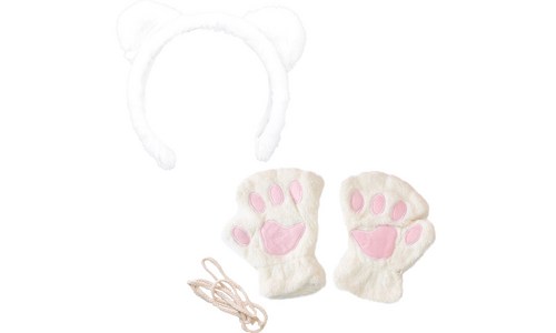 파티쇼 밍크 고양이 머리띠 + 밍크 고양이 장갑 양손 세트
