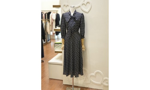 샤틴 리본넥 패턴 롱 원피스