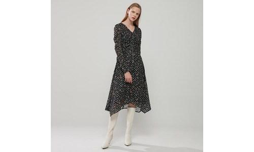 에고이스트 블랙 셔링 포인트 V넥 롱 원피스 EL4WO161