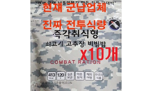 군납 전투식량 즉각취식형 쇠고기 고추장비빔밥 (10개) 무료배송
