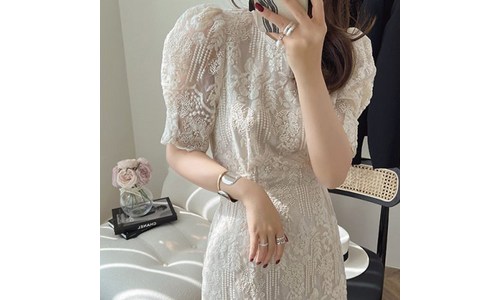 메이리앤 피로연 원피스 돌잔치 상견례 하객 반팔 퍼프 레이스 롱원피스