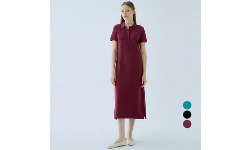 헤지스 레이디스 하절 로고자수반팔카라원피스 B780P2