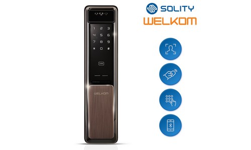[전국설치] 솔리티 웰콤 신제품 얼굴안면인식 푸시풀 WSP-2900A 카드키2개+번호키 블루투스(옵션) AI딥러닝기술 신속 정확한 얼굴인증 얼굴인식100개 현관문 디지털도어락
