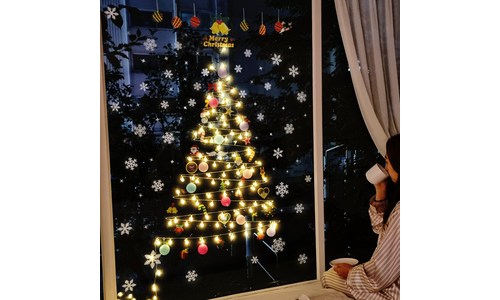 1번째 제품 제이토리 크리스마스 벽트리 세트 50구 100구 앵두전구 코튼볼 창문 트리 전구 조명 눈꽃 스티커 장식 용품 리모컨 USB ...