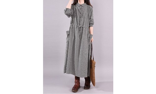 1번째 제품 롱 원피스 한국 스타일 느슨한 면화 및 린넨 격자 무늬 긴팔 레이스 업 허리 2번째 제품 아디 기모 ...