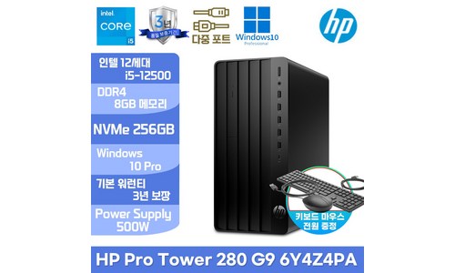 1번째 제품 HP Pro 280 G9 MT 6Y4Z4PA i5-12500/8GB/256SSD/Win10Pro/500W 2번째 제품 HP 파빌리온 화이트에디션 사무용 데스크탑(인텔 i7/8GB/256GB/윈11홈/1년AS) TP01-3005KR, TP01-3005KR, 기본형 ...