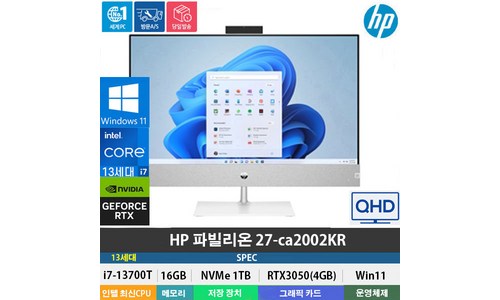 1번째 제품 (당일발송) HP 파빌리온 27-ca2002kr 일체형PC 13세대/i7-13700T/16GB/1TB/RTX3050/Win11/QHD/27형/무선키보드+무선마우스+키스킨 2번째 제품 (당일발송) HP 파빌리온 27-ca2002kr 일체형PC 13세대/i7-13700T/32GB/1TB/RTX3050/Win11/QHD/27형/무선키보드+무선마우스+키스킨 3번째 제품 웰치 KR-110TC ...