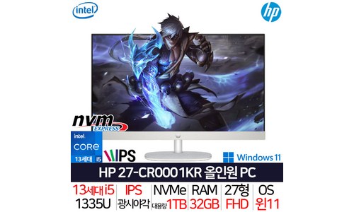 1번째 제품 HP 27-CR0001KR_T4 23년 신모델 13세대 i5 올인원 일체형 사무용 가정용 컴퓨터 본체 데스크탑 PC 윈도우11 2번째 제품 HP ...